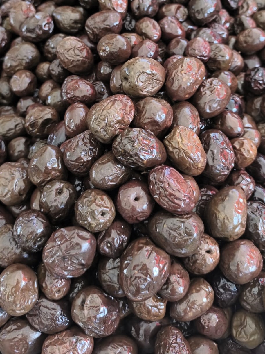 ✔ Aspetto rustico e colore nero opaco, tipico delle olive disidratate